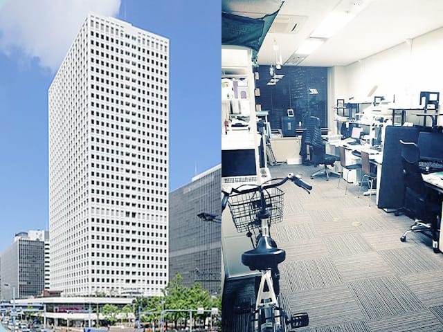 上記は当時の入居ビルである大阪駅前第3ビルの外観写真と、代表携帯に残っていた執務スペースの写真です。